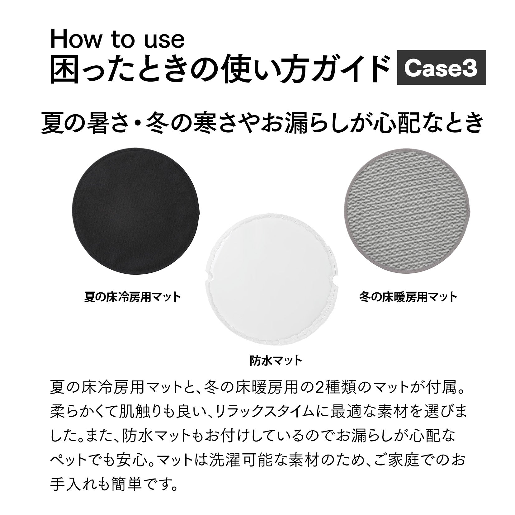 【季節に合わせたマットを用意】ROOMには夏用、冬用の2種類のマットが付属しています。 お漏らしが心配なペットには、防水マットもご用意しています。マットは洗濯ができるので、清潔に使用できます。