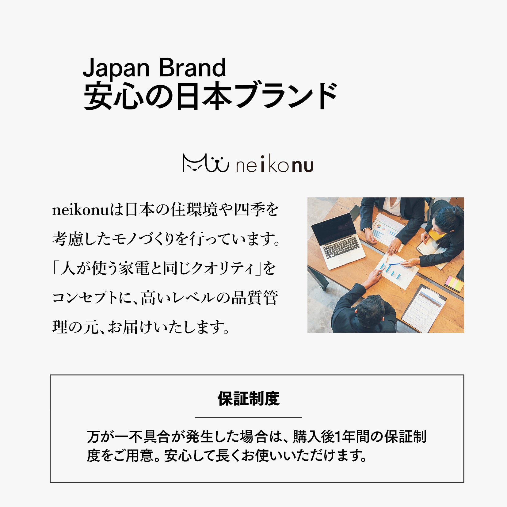 【厳しい実証試験をクリア】neikonu (ネイコヌ)は、"人が使う家電と同じクオリティ"をコンセプトに、日本の品質管理機関を通して厳しい実証試験をクリアした製品のみをお届けします。 温度や心理ストレスは、体調に悪い影響を及ぼしうることは科学的にも聡明されています。