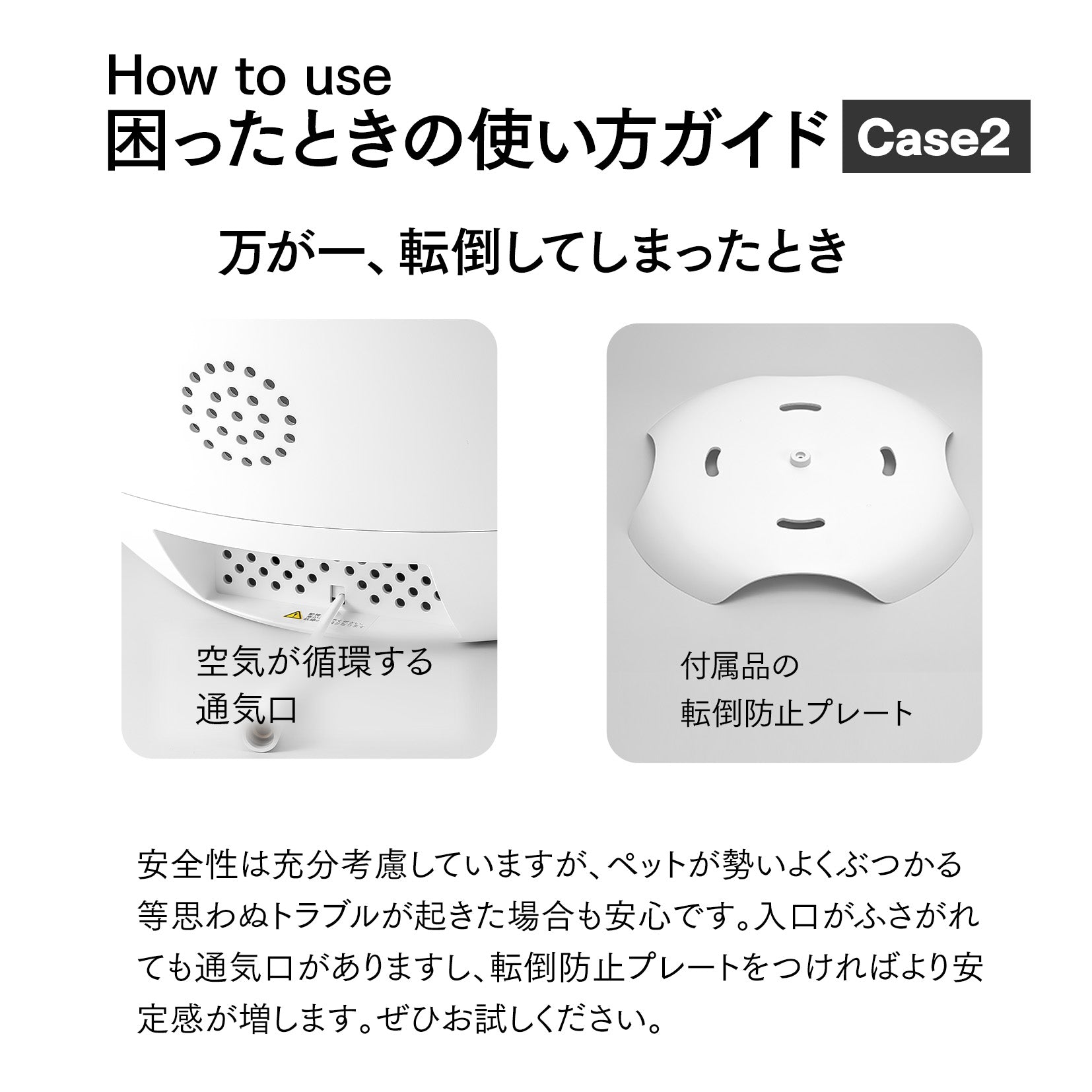 【もしもの時も安心、安全設計】万が一ルームが転倒して出入口が塞がっても、空気を循環させる設計です。転倒防止用のパーツも付属しています。